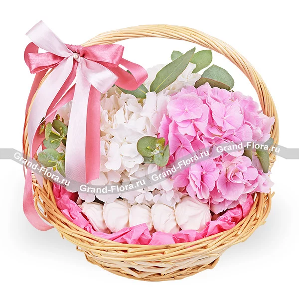 Море нежности - корзина с белой и розовой гортензией